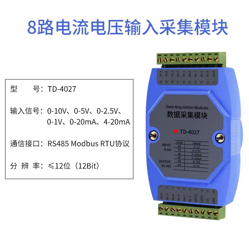 模拟量采集卡多通道输入输出AI/AO模块0-10V电压电流4-20mA转485